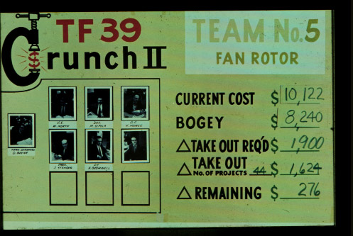 Results of an 18-member team task force on a jet engine (20 slides; folders 165-184). Some information has been deleted. Task forces were usually full time for 4-16 weeks depending upon size of project. The first two in GE were conducted in 1960 and wer